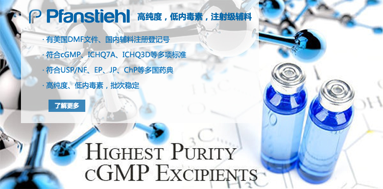 “熱烈祝賀Pfanstiehl的注射級甘氨酸Glycine(G-140)喜獲CDE登記號F20250000403, 這是Pfanstiehl產品獲得的第18個CDE登記號!”甘氨酸在醫藥輔料制劑中應用廣泛,, 可作為緩沖劑,增溶劑,穩定劑等,具有諸多優勢。Pfanstiehl秉承一貫高品質理念,為滿足全球生物制藥行業對于高品質甘氨酸的需求,隆重推出的注射級甘氨酸Glycine (G-140), 具有超高純度,超低內毒素,超低金屬殘留的特點,單獨檢測29種金屬離子,并且新增DNA,RNA,DNA酶,RNA酶和脂肪酶,亞硝酸鹽等多項質量指標的檢測,符合多國藥典規定(USP, EP, BP, JPE, ChP),可用于生物治療性藥物和疫苗的生產。產品信息:· 產品名稱:Glycine, High Purity, Low Endotoxin, Low Metals, USP, EP, BP, JPE, ChP (G-140)· 中文名稱:甘氨酸· 分子式:C2H5NO2· 分子量:75.07 g / mol· CAS號:56-40-6· 產品貨號:G-140產品特點: · 超高純度,超低內毒素,超低微生物含量,超低金屬雜質殘留· 質量指標新增DNA,RNA,DNA酶,RNA酶,脂肪酶和亞硝酸鹽檢測· 符合多國藥典:USP, EP, BP, JPE, ChP· 符合ICH Q3D標準· 符合GMP標準· 已獲DMF和CDE登記號 產品應用:· 緩沖劑· 穩定劑· 增溶劑如果您對Pfanstiehl注射級別Glycine G-140感興趣,歡迎聯系Pfanstiehl 中國區代理商北京西美杰科技有限公司獲得如下詳細的產品概況說明文件和測試樣品。Pfanstiehl Inc.最新產品系列如下,歡迎聯系北京西美杰科技有限公司獲取100g裝免費樣品。北京西美杰科技有限公司為Pfanstiehl中國代理,為客戶提供完善的技術支持與售后服務。歡迎撥打西美杰客服電話400-050-4006或者登陸網站www_xmjsci_com.sgedg.com了解更多信息。 更多>